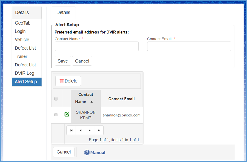 The Alert Setup module allows administrators to select individuals which will be alerted when a defect comes through a driver(s) pre or post trip inspection.