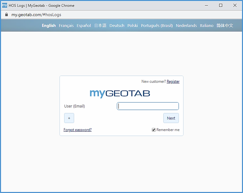 This will take you to the Geotab Login screen where the user will enter their credentials. Refer to the following screenshot.