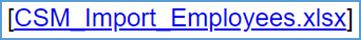 Step 1: Download the employee spreadsheet template [CSM_Import_Employees.xlsx]. The link can be found under the Instructions section and is marked in blue lettering.