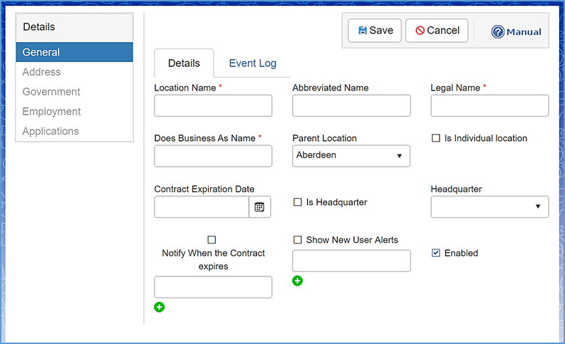 Note: The ‘Is Individual location’ checkbox is for setting up an entirely new organization with no ties to your current location, it will require its own set of rules and reports completely independent from users and configurations of your current setup. REACH OUT TO Craig Safety - Compliance Safety Manager BEFORE USING THIS OPTION