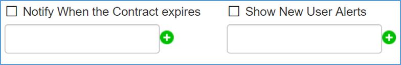 (optional) Step 4: Navigate to the fields labeled Notify When the Contract expires and Show New User Alerts and click the check boxes. Enter the email ID’s of individuals whom email alerts will be sent to.