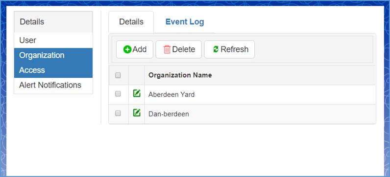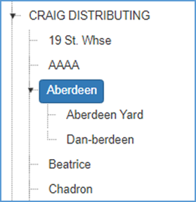 Whichever location(s) the User is assigned to will automatically give the specified user the same access controls as the children organization(s) and/or location(s). Refer to the following screen shot. Assigning access to Aberdeen’s location will also give the user access to Aberdeen Yard and Dan-berdeen locations.