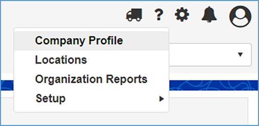 Step 1: To access your company profile, hover your cursor over the Settings button in the top right hand corner of the home screen.