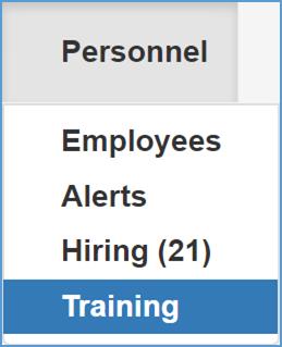 To access the Training Program, move your cursor over the Personnel tab located on the top menu bar, and select Training from the drop-down list.